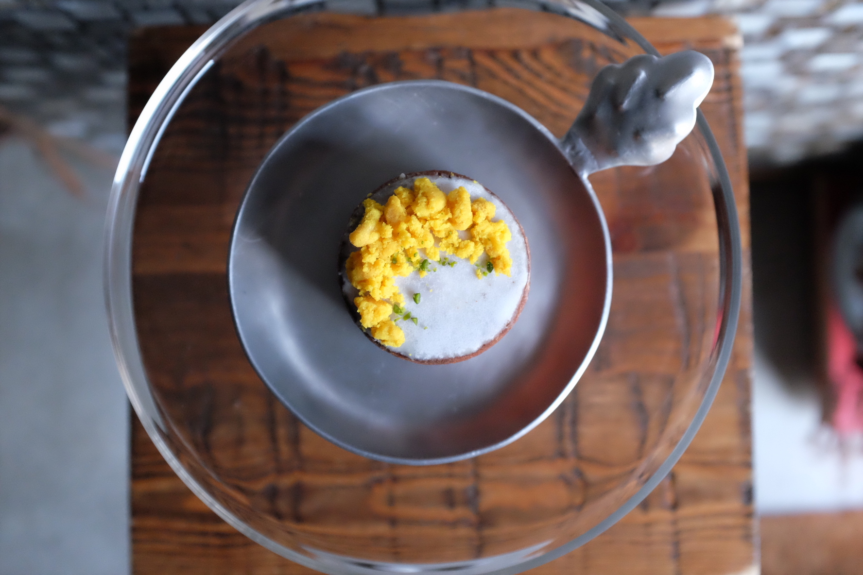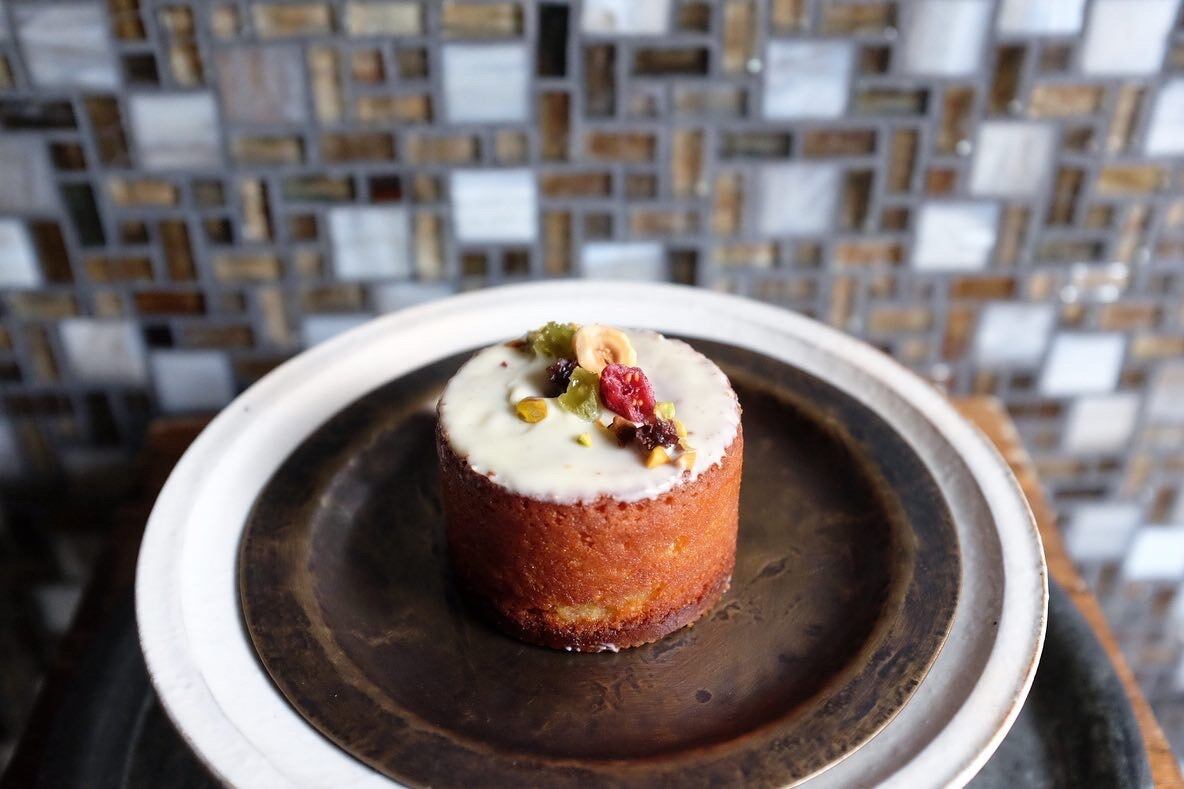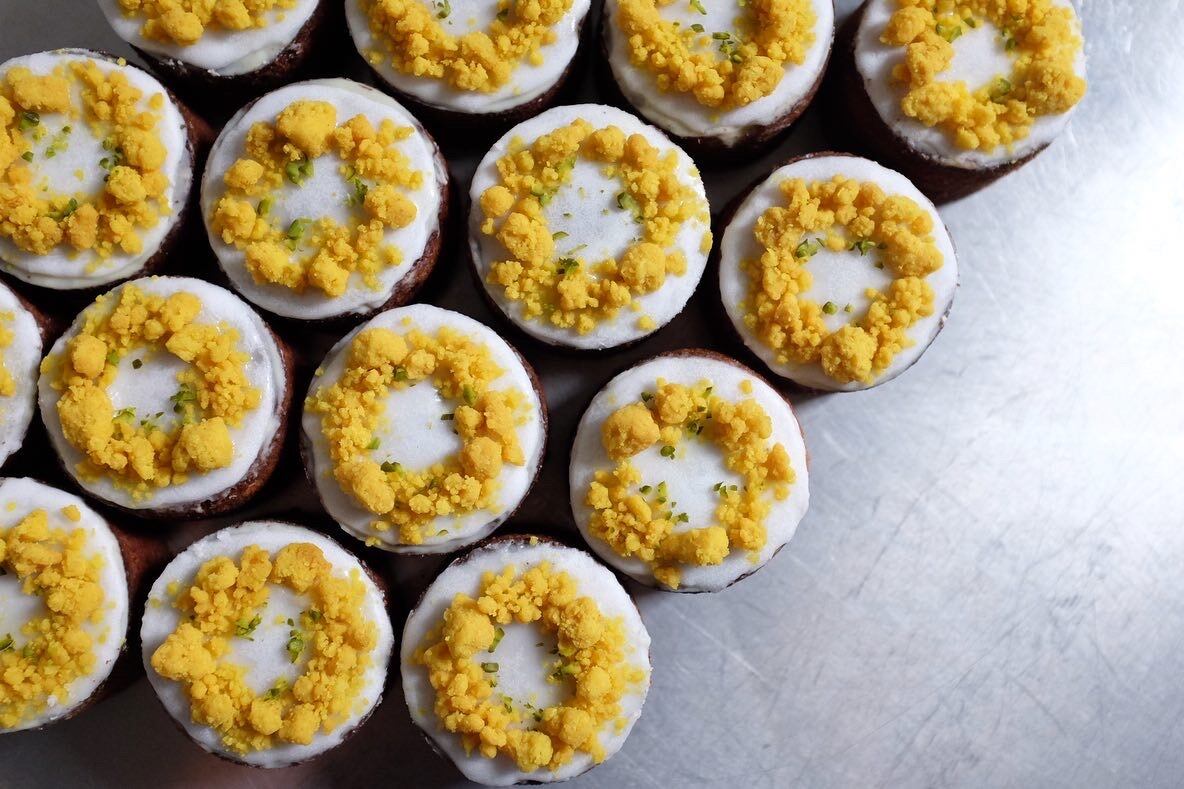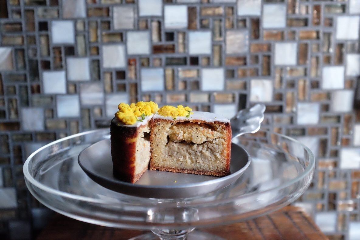 春のお店の目印にもなっていたアトリエの庭に咲くミモザをイメージしてお作りした熟タルトです。
