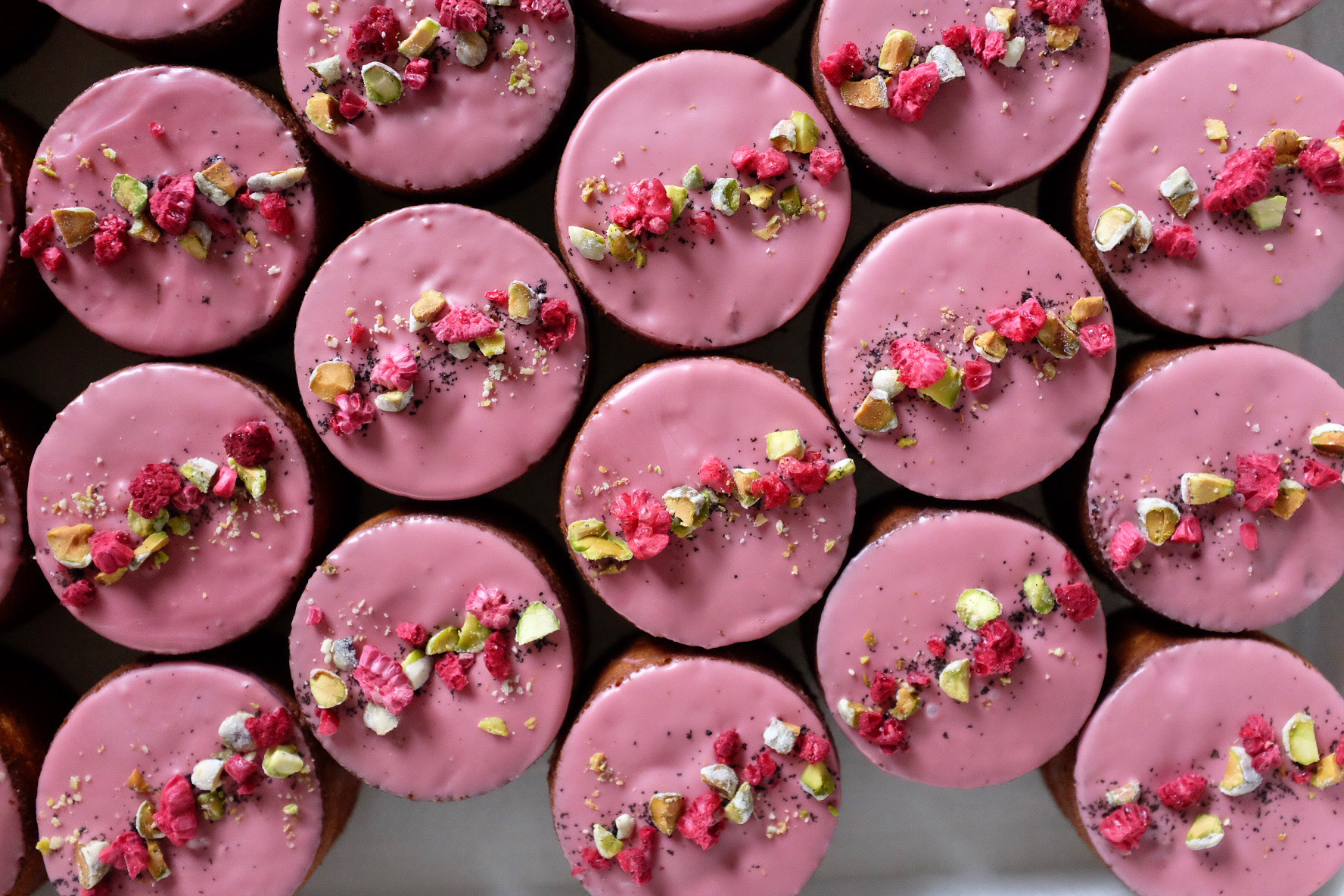 仕上げには贅沢にルビーチョコやフランボワーズ、ピスタチオをあしらいました。